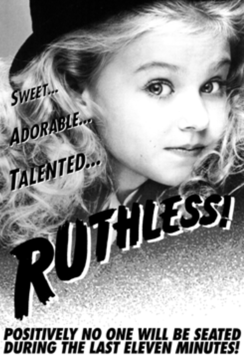 When Britney Spears was an understudy in Ruthless!, and this photo was her headshot at the time. Being an understudy is significant in Ruthless!, as the young Tina Denmark is cast as the understudy and will do ANYTHING to get the part.